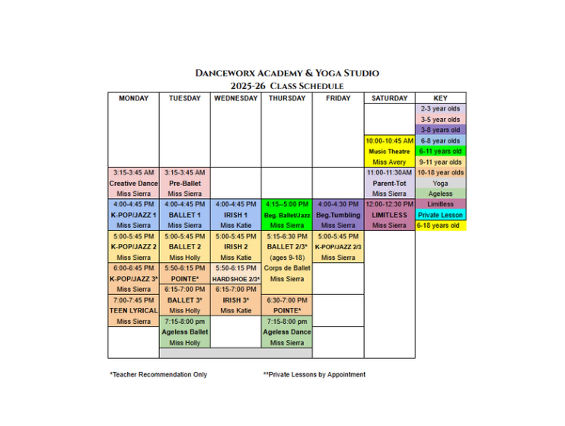 Family-friendly, performing dance school featuring K-pop, Ballet, Irish, Hip-Hop, Modern, Jazz, Lyrical, Parent-Tot, cultural, country, and creative dance styles for all ages and ability levels.